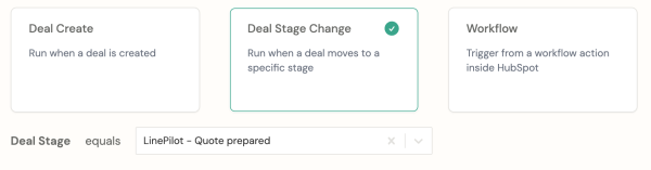 We're going to configure our template to trigger when the deal moves to "Quote Prepared" in our deal pipeline: